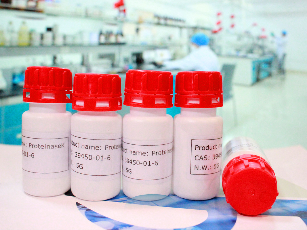 蛋白酶K是一種從白色念珠菌分離出來(lái)的強(qiáng)力蛋白溶解酶,具有很高的比活性,是DNA提取的關(guān)鍵試劑。該酶在較Chemicalbook廣的pH范圍(4?12.5)內(nèi)及高溫(50?70°C)均有活性,用于質(zhì)?;蚧蚪MDNA、RNA的分離。 蛋白酶K能消化天然的角蛋白(Kerati),而得名蛋白酶K。其主要的切割位點(diǎn)是脂肪族氨基酸和芳香族氨基酸的羧基端肽鍵。由于其廣泛地的切割能Chemicalbook力,在實(shí)驗(yàn)室中很常用。此蛋白酶屬于絲氨酸蛋白酶SB超家族中的S8家族(枯草桿菌蛋白酶也屬于這個(gè)超家族)。蛋白酶K的分子量為28.9千道爾頓。 |